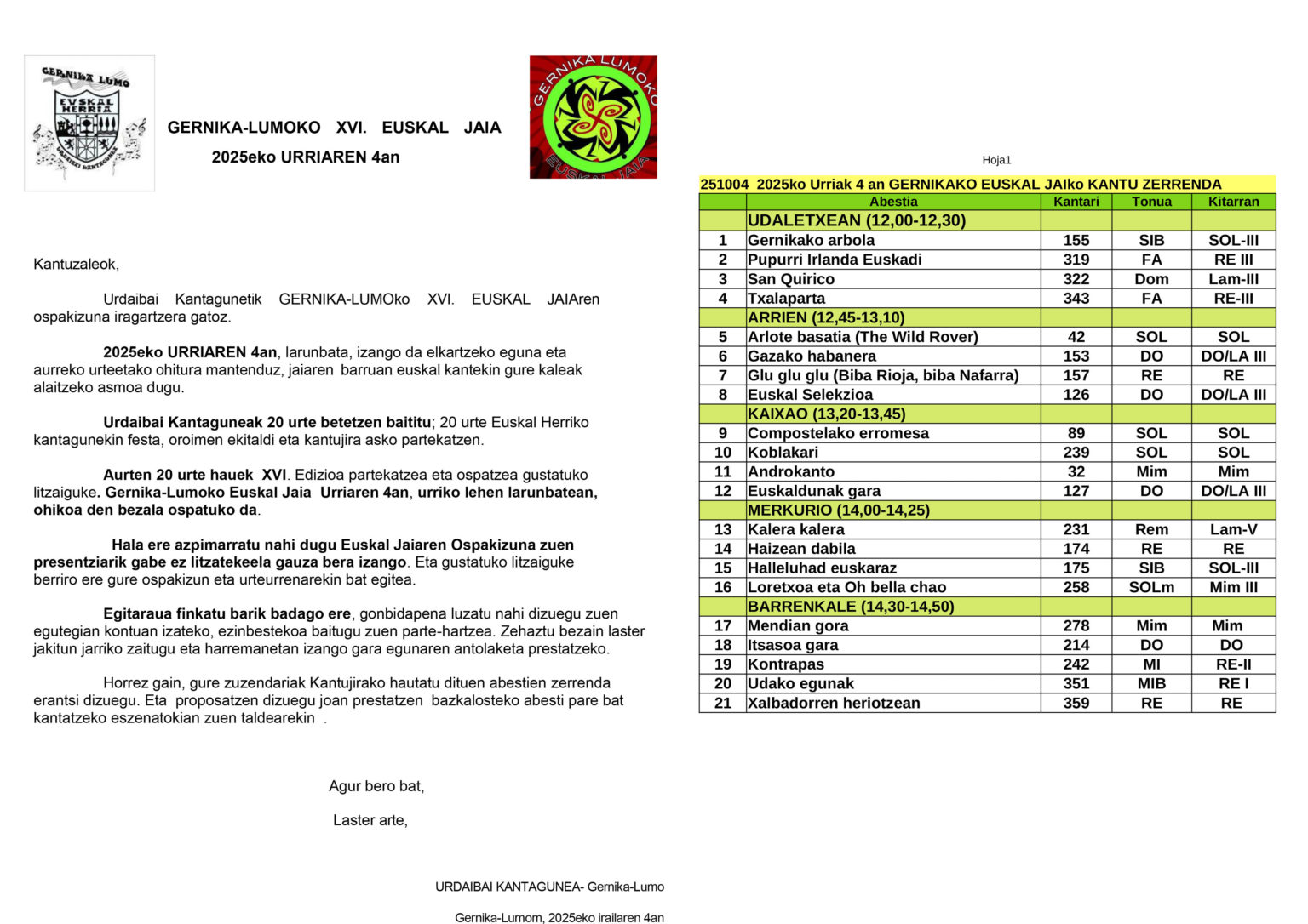 Arrokako gure lagunek proposatzen digute Gernikan den kantu egunari laguntzea